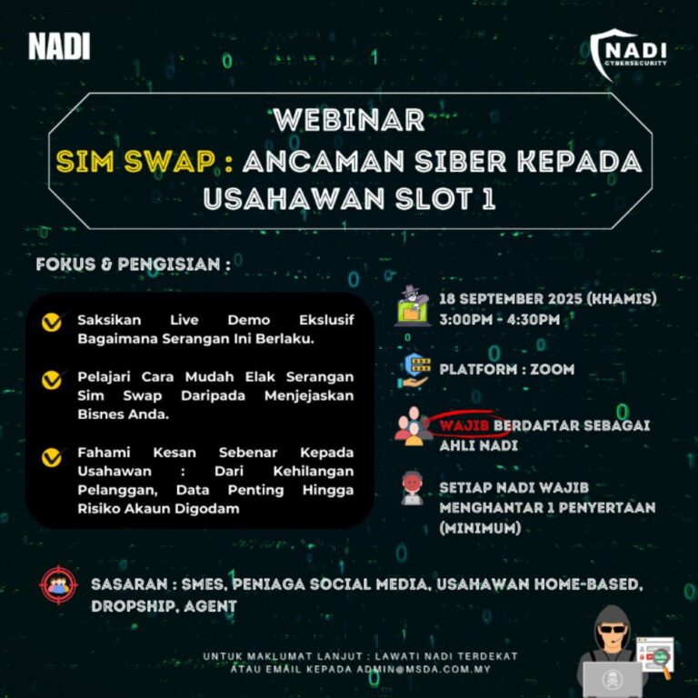 SIM SWAP : ANCAMAN SIBER KEPADA USAHAWAN SLOT 1 π Khamis, 18 Sept 2025π 3:30 β 4:30 pm