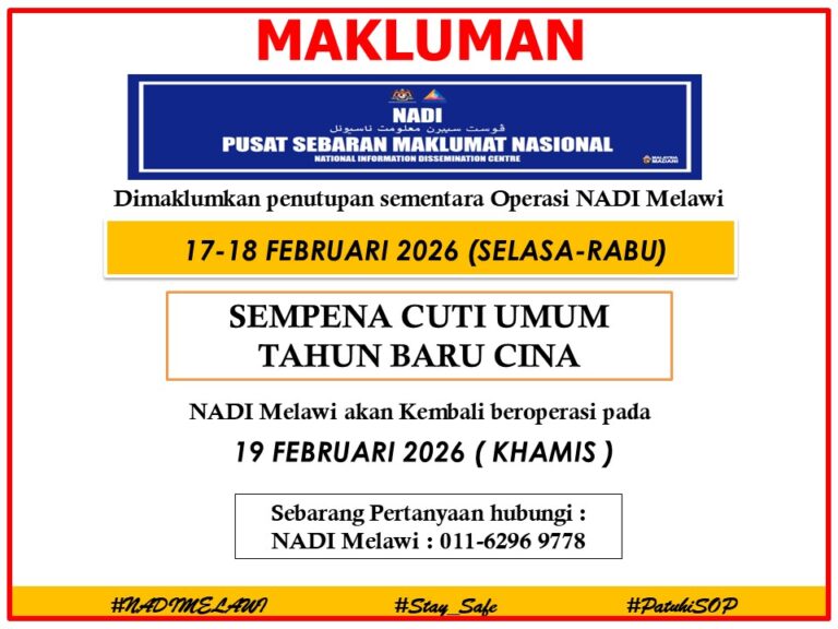 PENUTUPAN SEMENTARA OPERASI PUSAT SEBARAN MAKLUMAT NASIONAL (NADI) MELAWI BERSEMPENA CUTI UMUM TAHUN BARU CINA 2026.