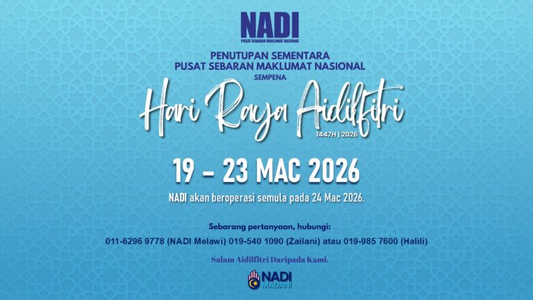 PENUTUPAN SEMENTARA OPERASI PUSAT SEBARAN MAKLUMAT NASIONAL (NADI) MELAWI SEMPENA CUTI UMUM HARI RAYA AIDILFITRI 2026.